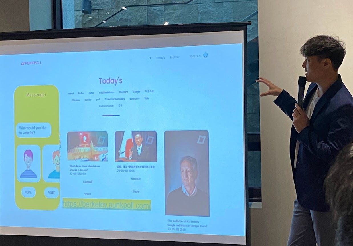 Punkpoll의 Jegwon(Punkpoll CTO)은 펑크폴 투표 및 여론조사 시스템에 대하여 소개하고 있다.