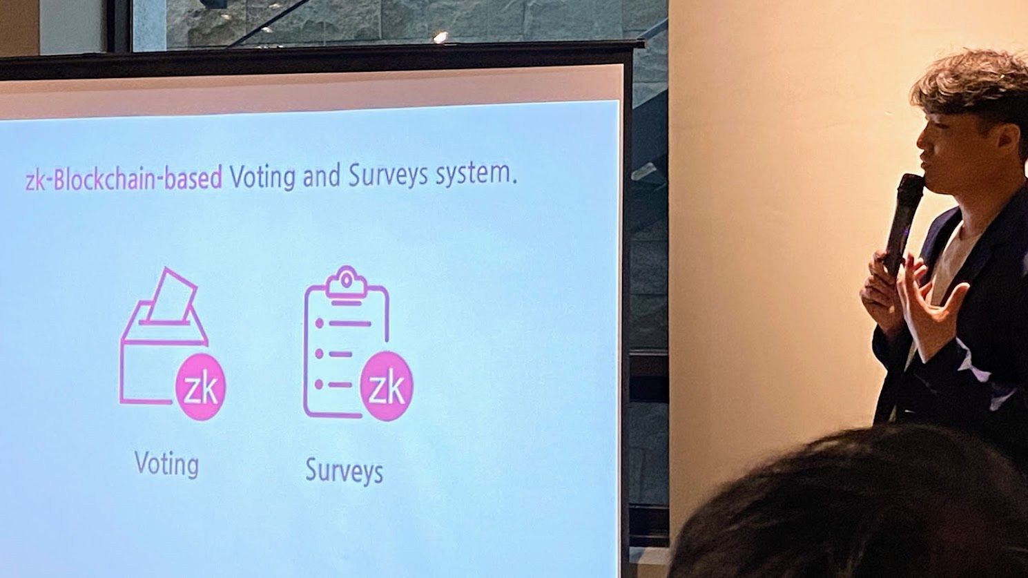 "블록체인과 영지식증명으로 구현할 수 있는 것 중에서 가장 완벽하게 구현할 수 있는 것은 아마 '투표 & 여론조사 시스템' 일 것입니다."